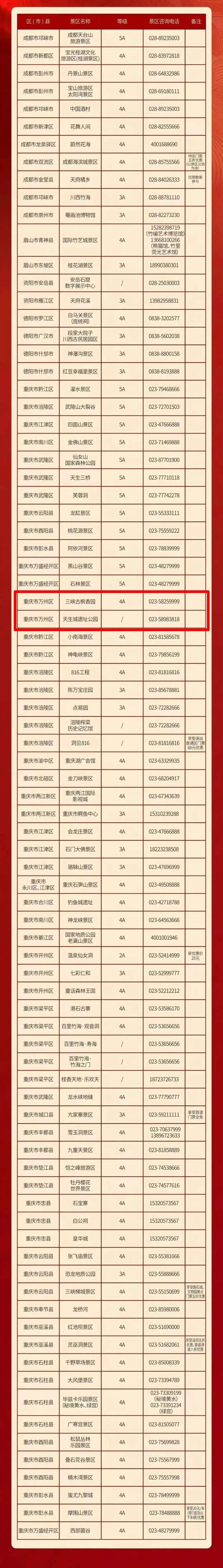 川渝84家景区门票互抵!万州是这2家→