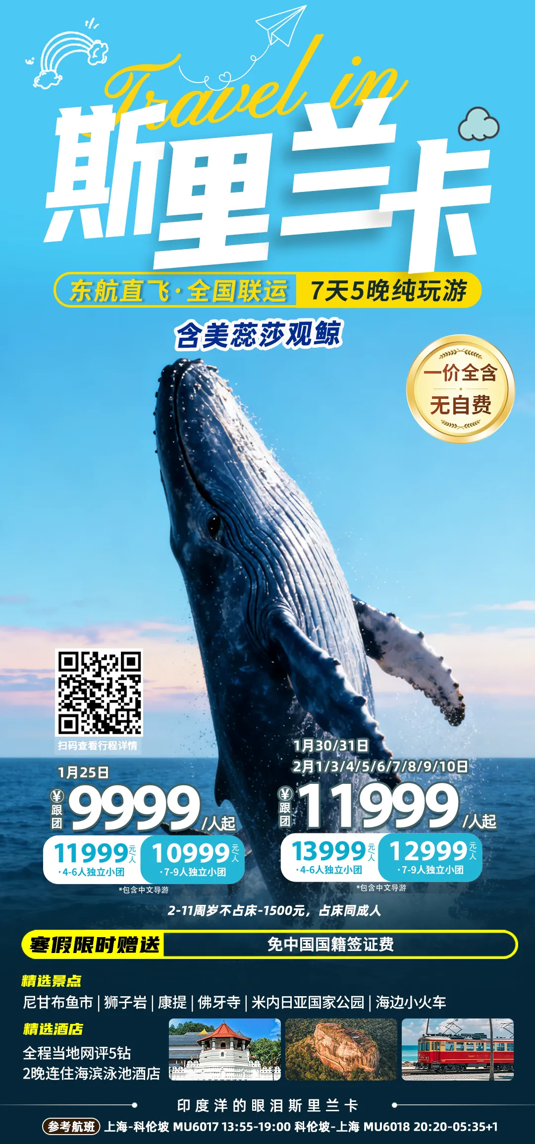 1. 斯里兰卡 推荐理由:多元体验浓缩于一岛 从海滩到高山、从古迹到野生动物。 亮点:自然奇观 乘坐高山火车(如康提—埃拉段),穿行于云雾森林,如同《千与千寻》的海上火车原型。 海滨度假 本托塔、乌纳瓦图纳拥有金色沙滩。