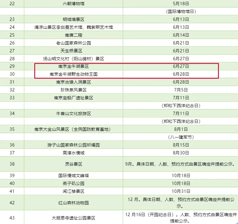 今年,在南京怎么免费爽玩?1月6日,市发改委公布了2026年度实行政府指导价管理的景区免费开放日,今年有43个旅游参观点(六合5家:平山森林公园、瓜埠山景区、桂子山石柱林景区、金牛湖景区、金牛湖野生动物王国)参与了免费开放日活动。