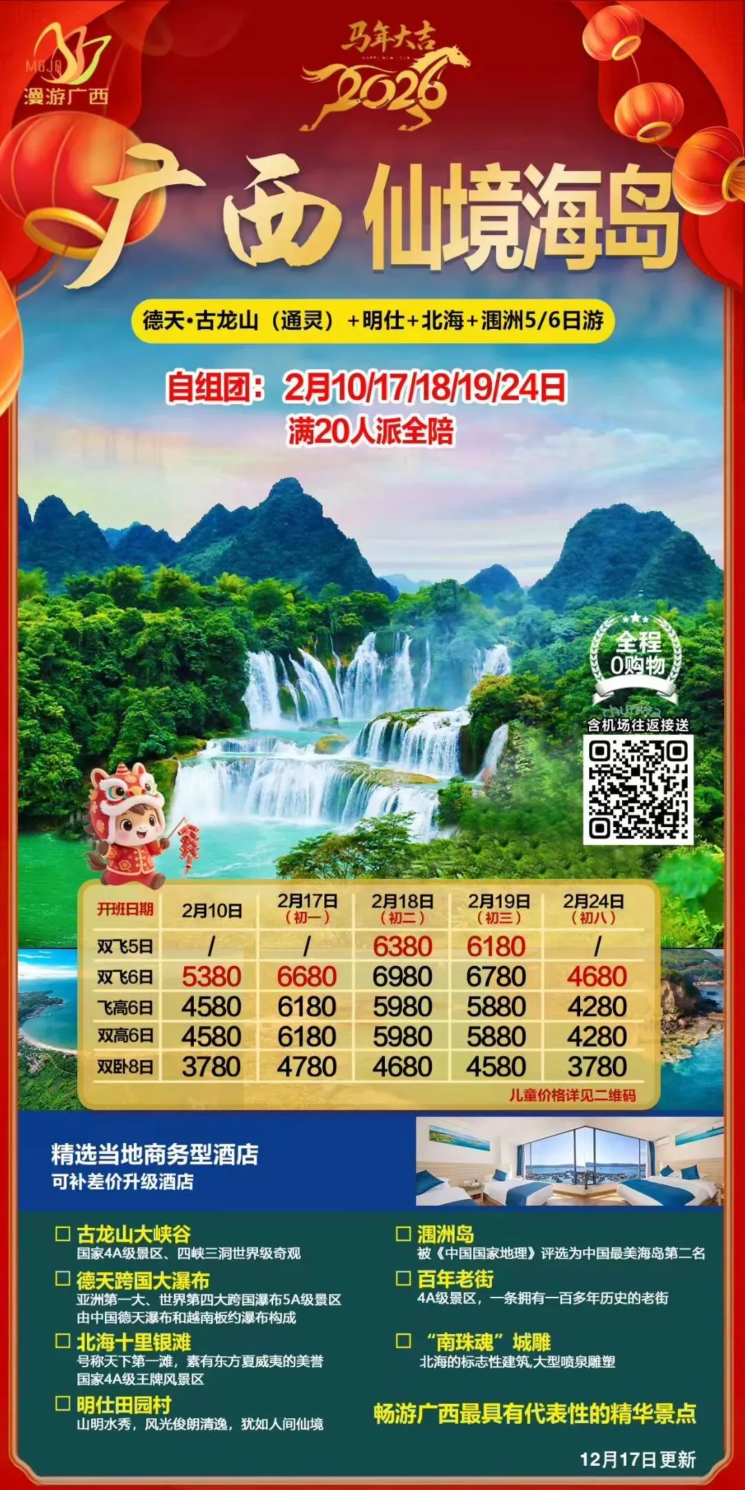 🌴广西的自然风光也是举世闻名。有桂林的山水、有黄姚古镇的古朴、有涠洲岛的碧海蓝天,每一处都如诗如画,让人陶醉其中。