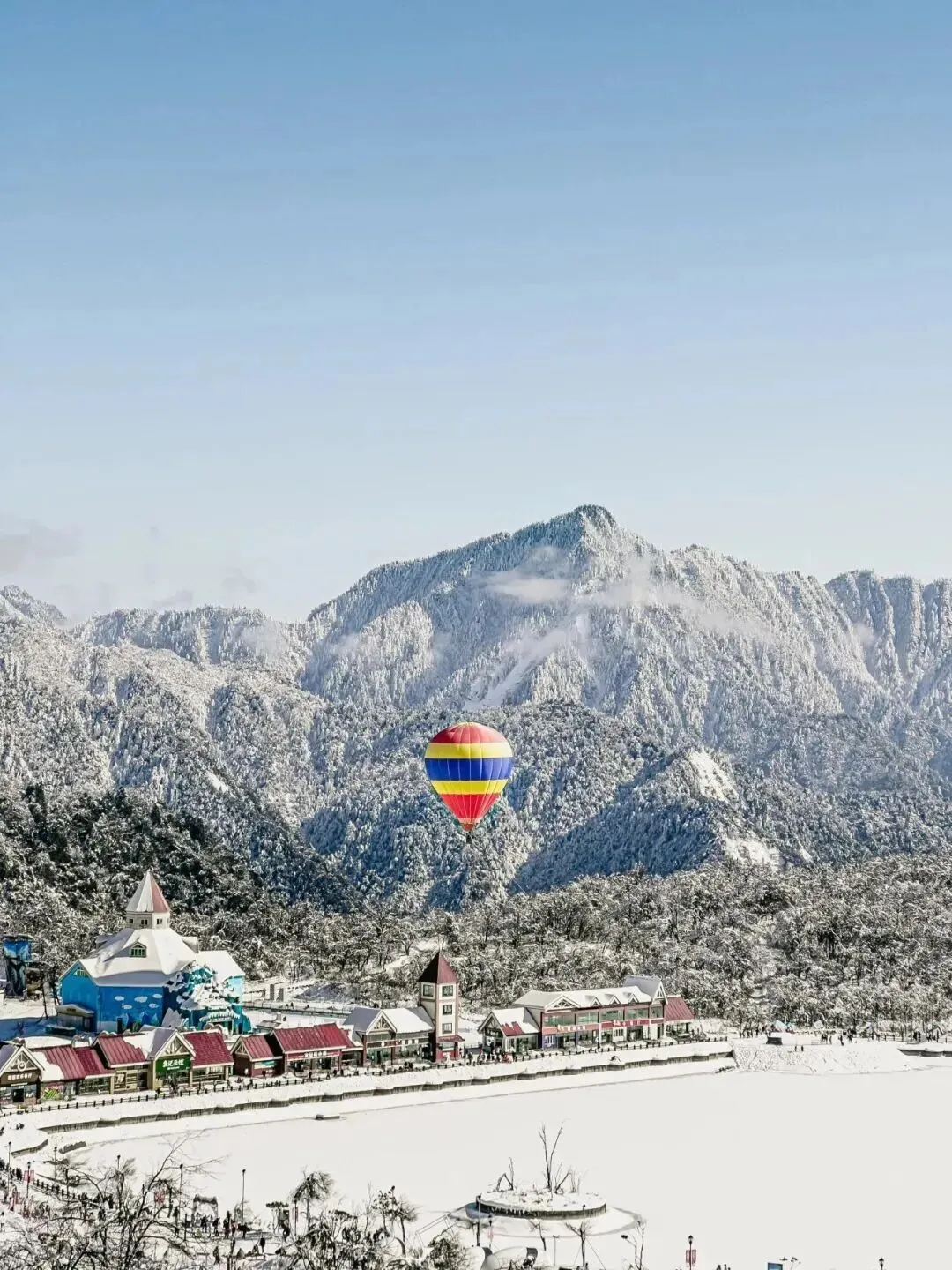 浪漫的雪山热气球缓缓升空,游客可俯瞰雪场璀璨灯光与热闹人群,沉浸式感受“云端夜宴”的独特魅力。