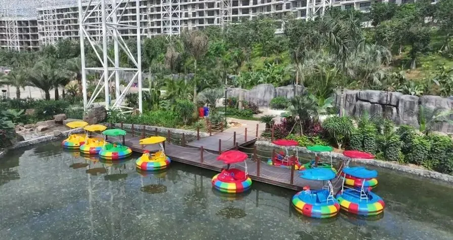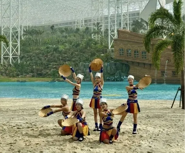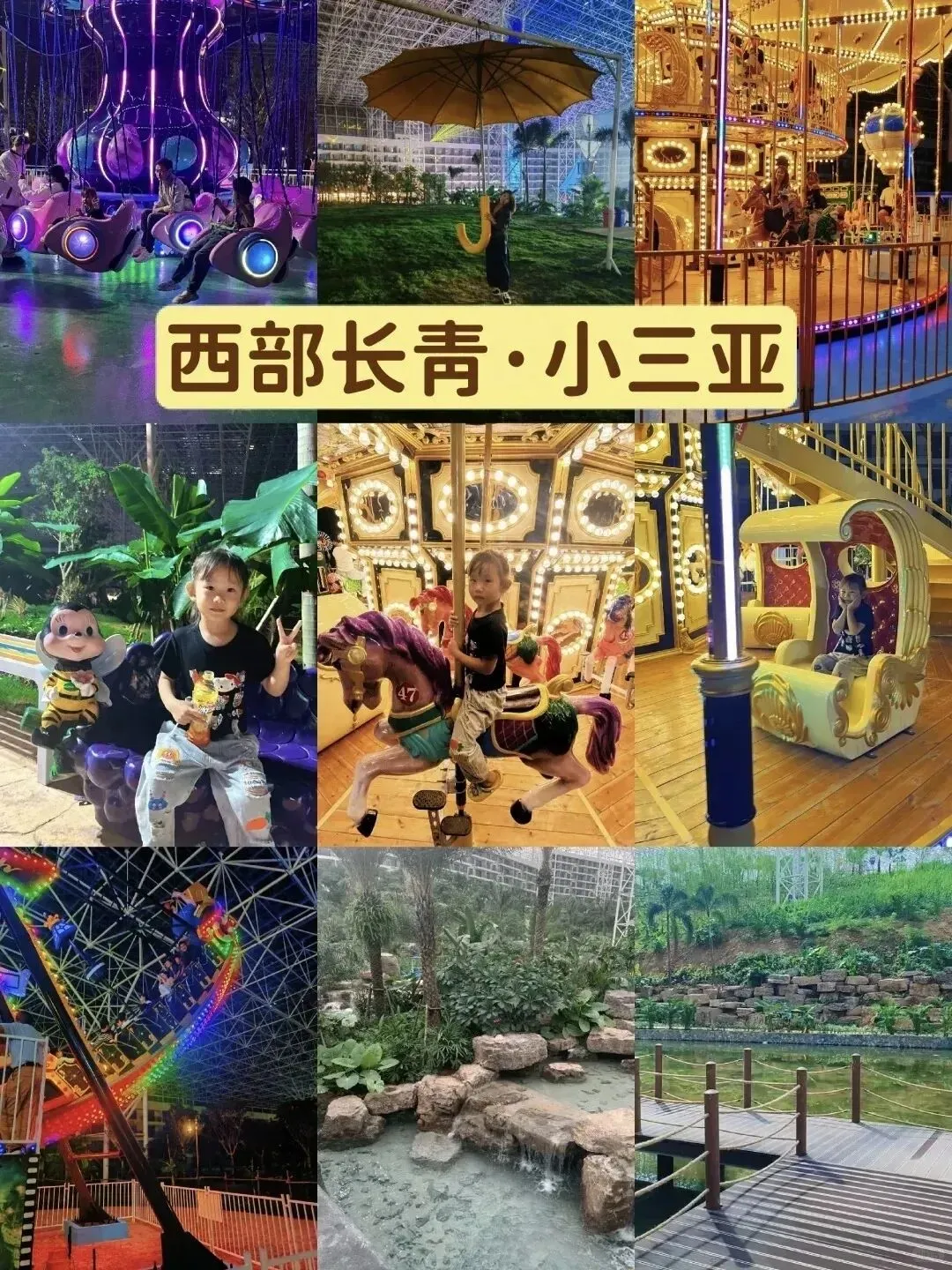 景区内拥有热带雨林景观、亲子游乐设施、阳光沙滩区的浅水池和细腻沙子、儿童游乐区的海盗船和旋转木马等免费畅玩,特色活动表演:有黎族、傣族等表演游客可以一起加入互动。园内有NPC带领“追雨林魔法精灵"等互动游戏,完成任务可获得"银票"在园内消费或者兑换礼品。夜晚,AI与VR技术打造的光影秘境,如梦如幻,漫步其中,温馨又浪漫。