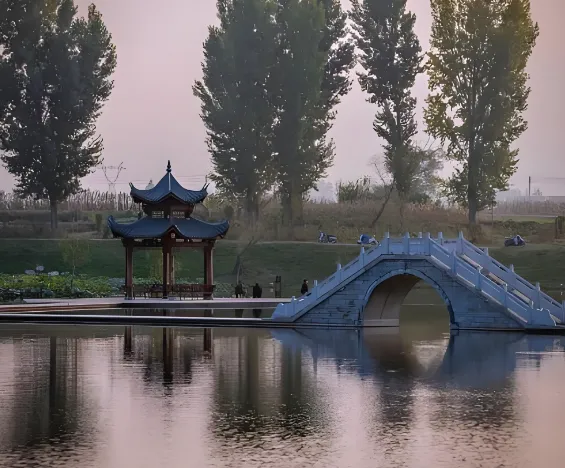 第八站:洹水公园——城市绿肺地址:安阳市文峰区彰德路,距殷墟仅2公里。这座市民公园以洹水为轴,建有水榭亭台、健身步道。清晨的太极队伍、傍晚的广场舞群,构成安阳人的生活画卷。免费开放,适合晨练或傍晚散步。