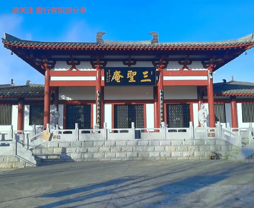 三圣庵位于吉林省白城市大安市兴华南街与南湖东路交叉口向东100米路北,始建于1935年10月,占地面积 15000 平方米,建筑面积 3660 平方米。采用纵轴式中轴对称进行布局,大雄宝殿居中而立,左右数间配殿。三圣,即西方三圣,为阿弥陀佛、观世音菩萨和大势至菩萨。阿弥陀佛是表无量光明,无量的寿命,无量的功德。观音菩萨是表大慈悲,宇宙的大慈悲。