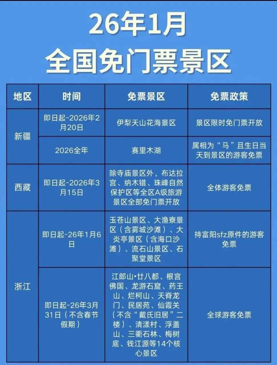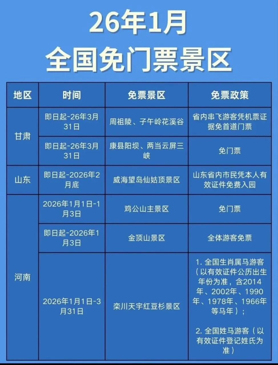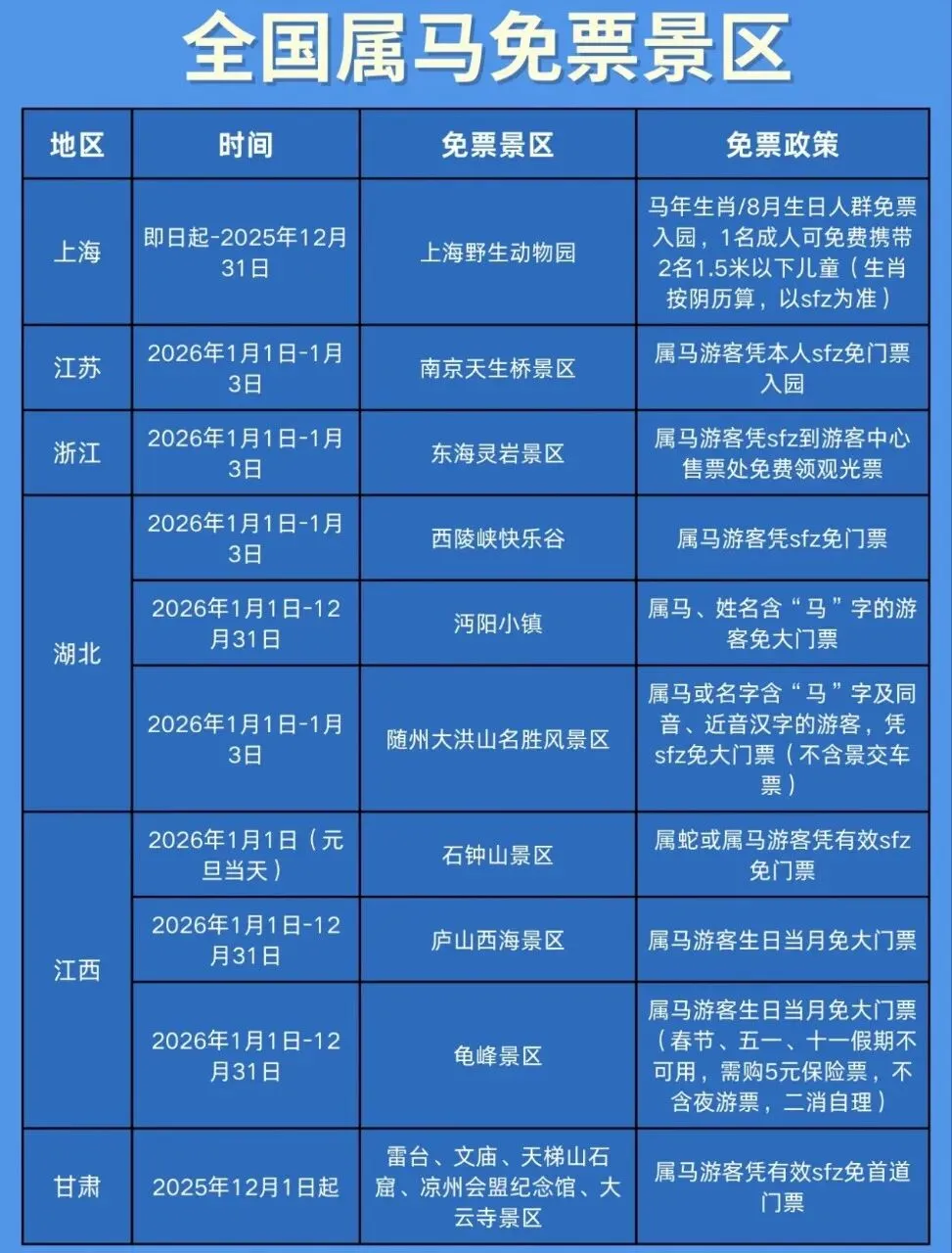 2026年确实有不少景区推出了免门票的福利,特别是针对生肖属马或姓马的朋友,福利超多!这里帮你整理了一份清单,快来看看哪些适合你。文末还有详细的免门票清单,注意查收哦👌