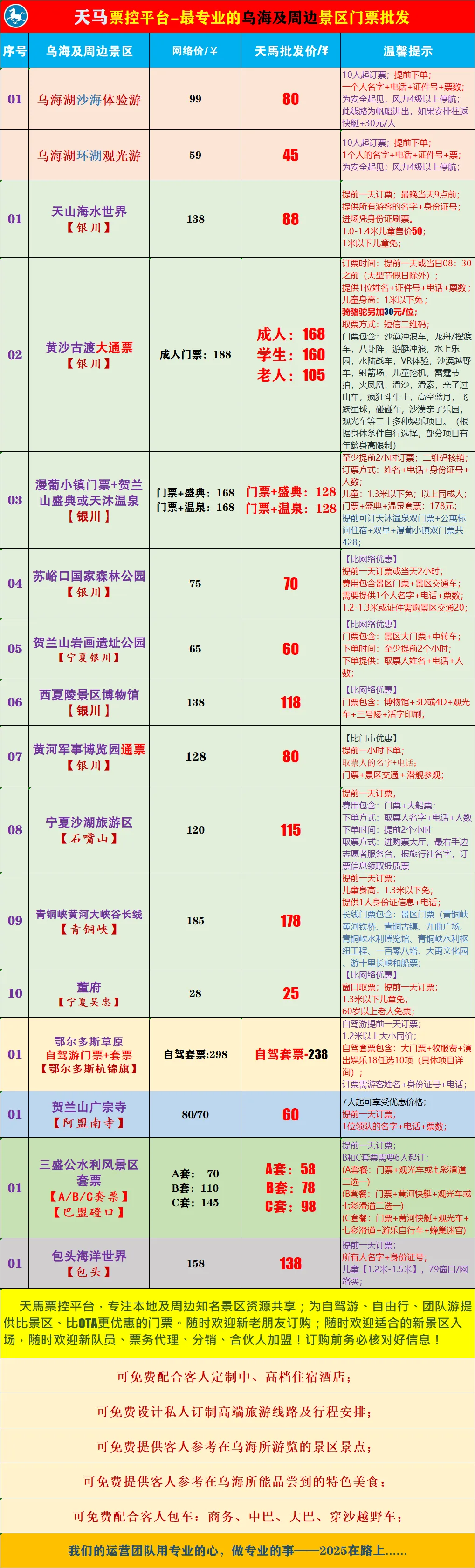 乌海周边旅游景区优惠票、万达影城特价票
