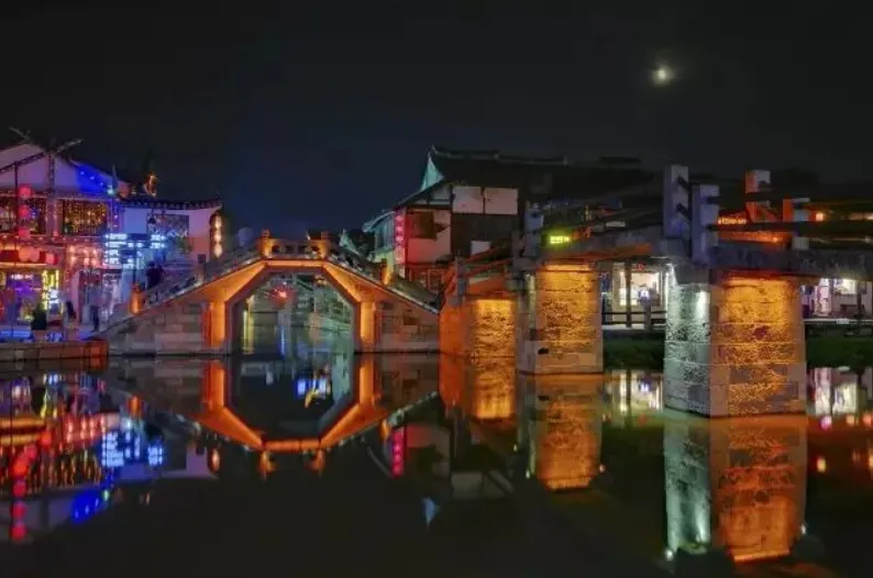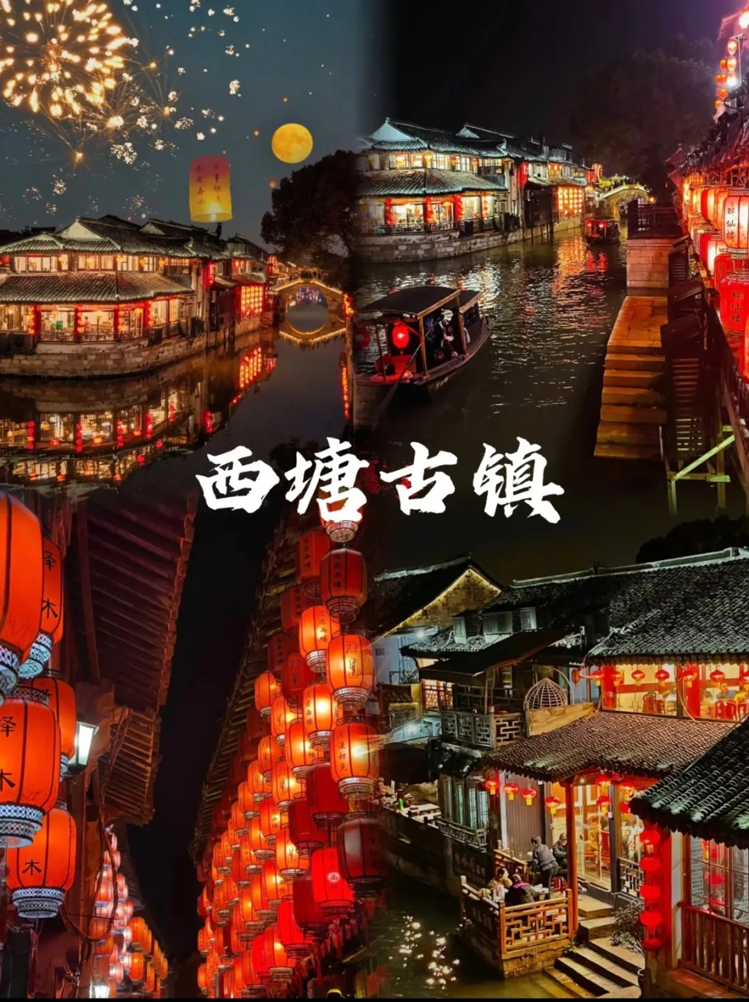 入园处,小桥流水,石狮门厅,园内环绕着砖砌花格游廊,水榭、曲桥、假山、凉亭、人工瀑布点缀其中,清新典雅。夜幕下的西塘古镇,晚上河边的红灯笼映在水中,朦胧浪漫,缓缓流淌的河水,可以让人忘记喧嚣的生活。