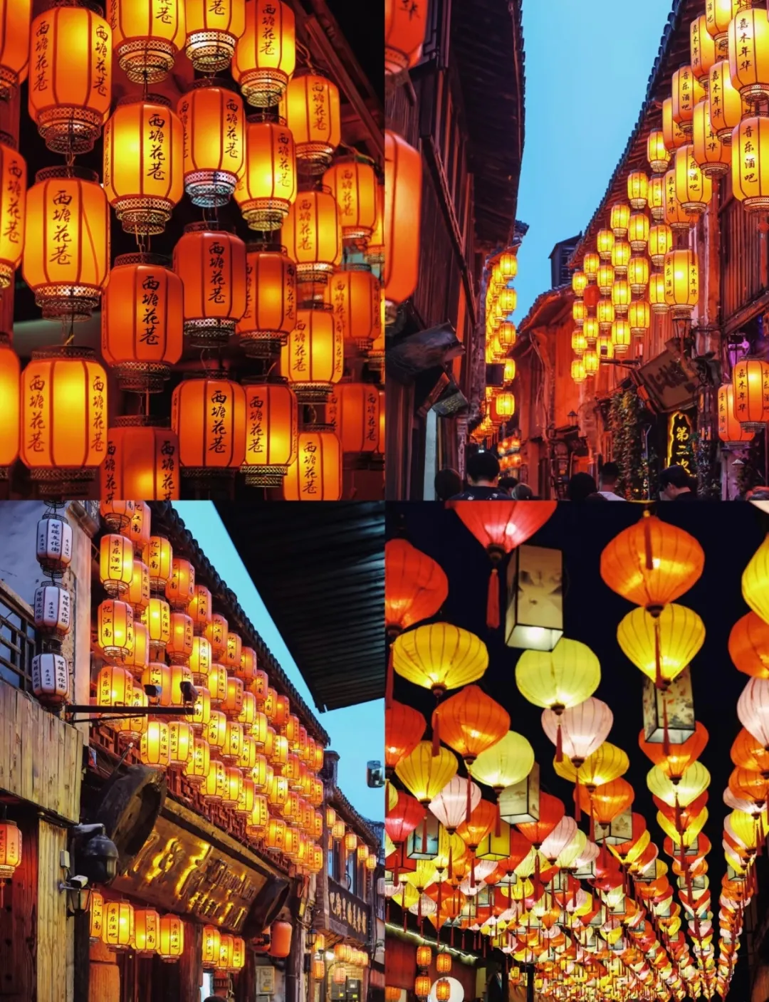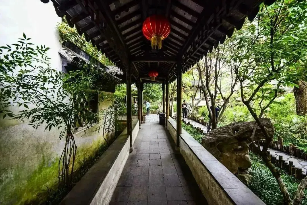 红灯笼挂满了长廊,乌篷船摇醒了晨雾,