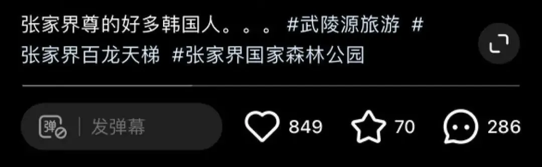 一位博主在张家界走进电梯,发现周围的人都在讲韩语,她举起手机记录下这魔幻的一刻。