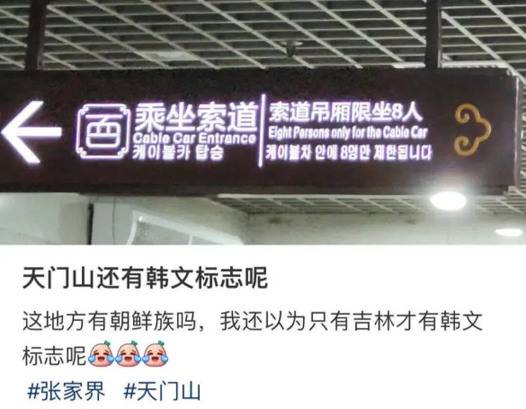 张家界景区内外遍布韩语标识,韩国游客不用翻译软件也能全程无忧畅行,来了就跟回家了一样,非常亲切。