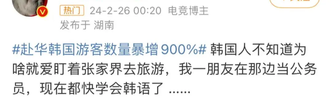 “我到张家界了,感觉在拍韩剧。怎么到处都是韩国人?”