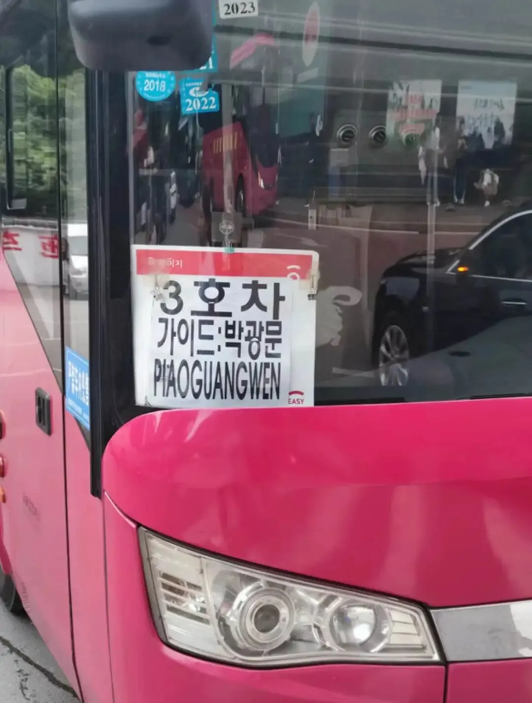 甚至,网友还发现了张家界的大巴上也有韩文。