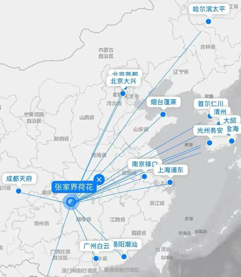 张家界竟然还是国内通韩国最多机场的城市,拥有包括首尔、釜山、仁川、济州、清州等在内的多条直飞航线。网友戏称,张家界已经实现在韩国境内的“村村通”。