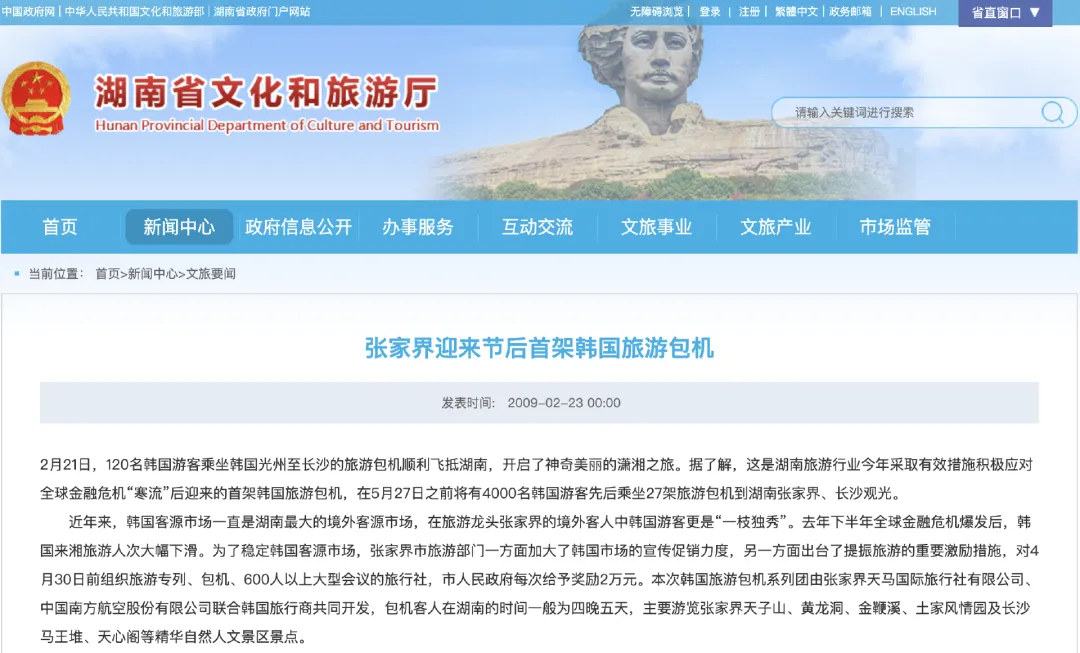 于是,次年,张家界就迎来了第一波韩国游客入境高峰。