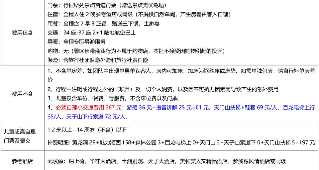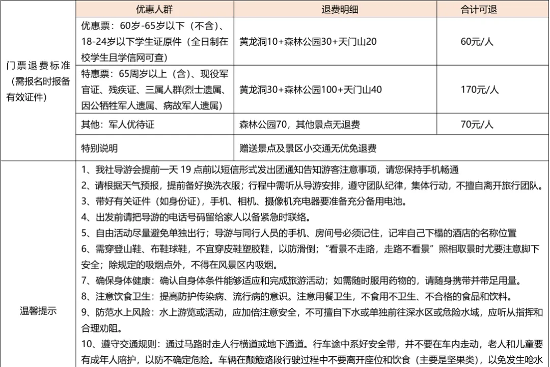 备注:特惠版需自理景区小交通