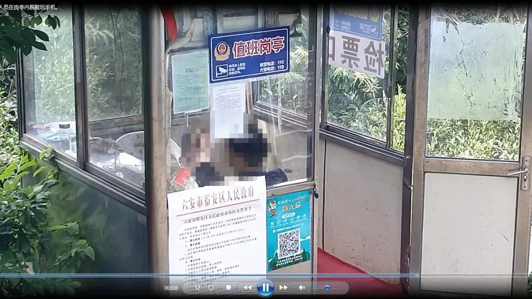 景区内工作人员岗亭内拖鞋玩手机