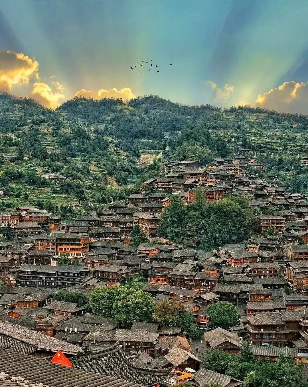贵州·千户苗寨 苗寨的吊脚楼从山脚一直盖到山顶,密密麻麻的,特别壮观。早上经常有雾,寨子若隐若现的,像仙境一样。当地的银饰和刺绣手艺真的很精美。