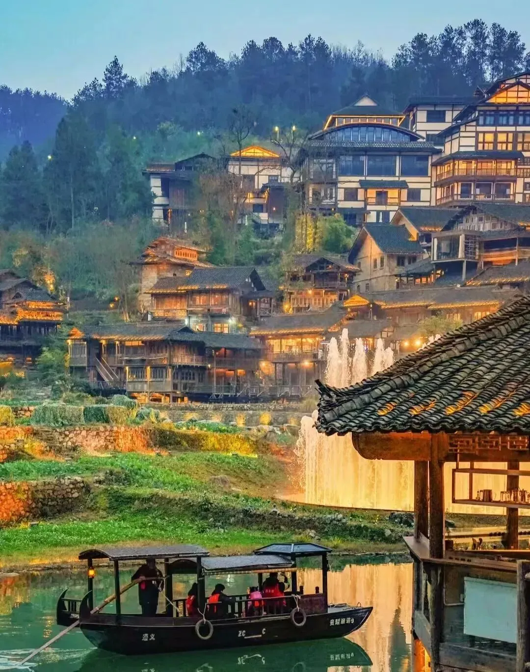 贵州·乌江寨 乌江寨晚上比白天更有味道。灯光亮起的时候,整个寨子倒映在水里,分不清哪个是真哪个是假。沿着河慢慢走,吹着风,特别放松。