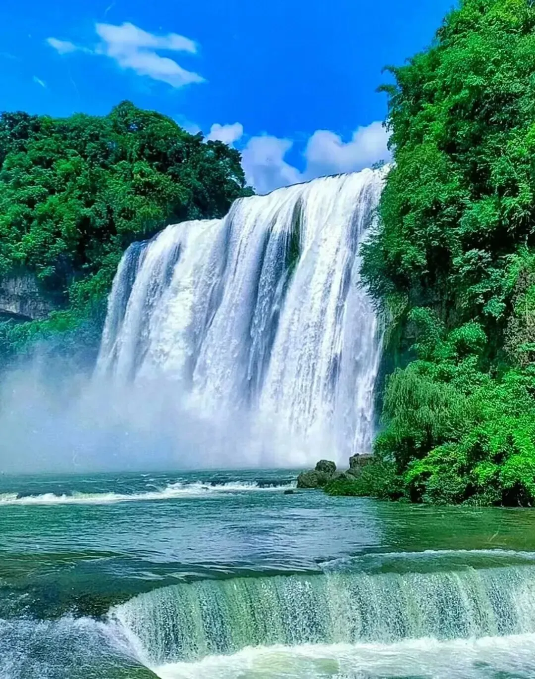 贵州·黄果树瀑布 还没走到瀑布跟前,就先听到轰隆隆的水声。走到近处,水汽扑面而来,特别凉快。夏天水量大的时候最壮观,冬天则显得秀气一些。