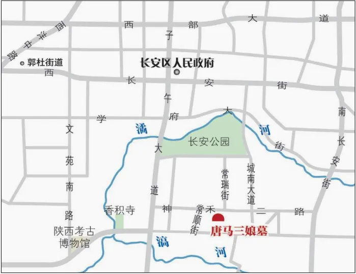 大周圣历元年(698年)五月十七日,马三娘病逝,时年二十九岁,葬于雍州乾封县万春乡神和原,今长安区贾里村一带。其墓葬形制为多天井长斜坡单室墓,这是唐高宗后期至唐中宗时期最为常见的墓葬类型。