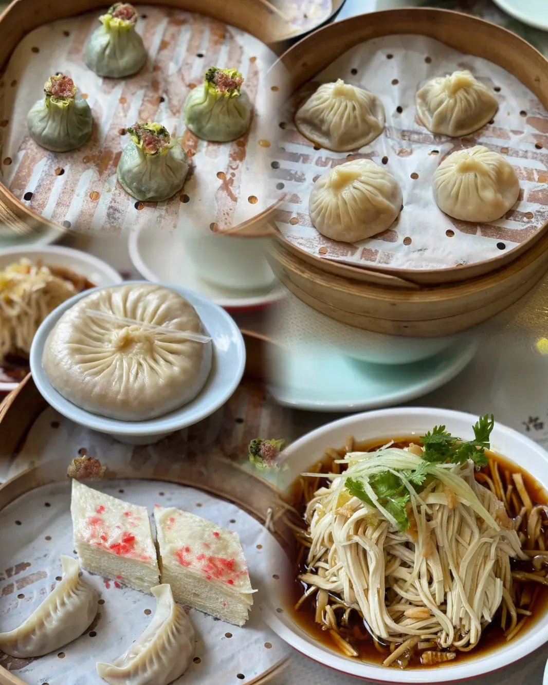 再来一笼翡翠烧麦,皮薄不破,青菜肉末像打招呼。