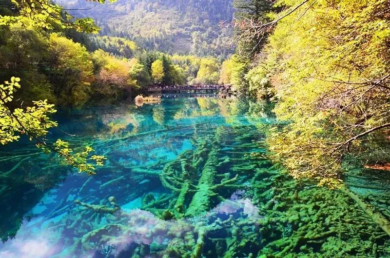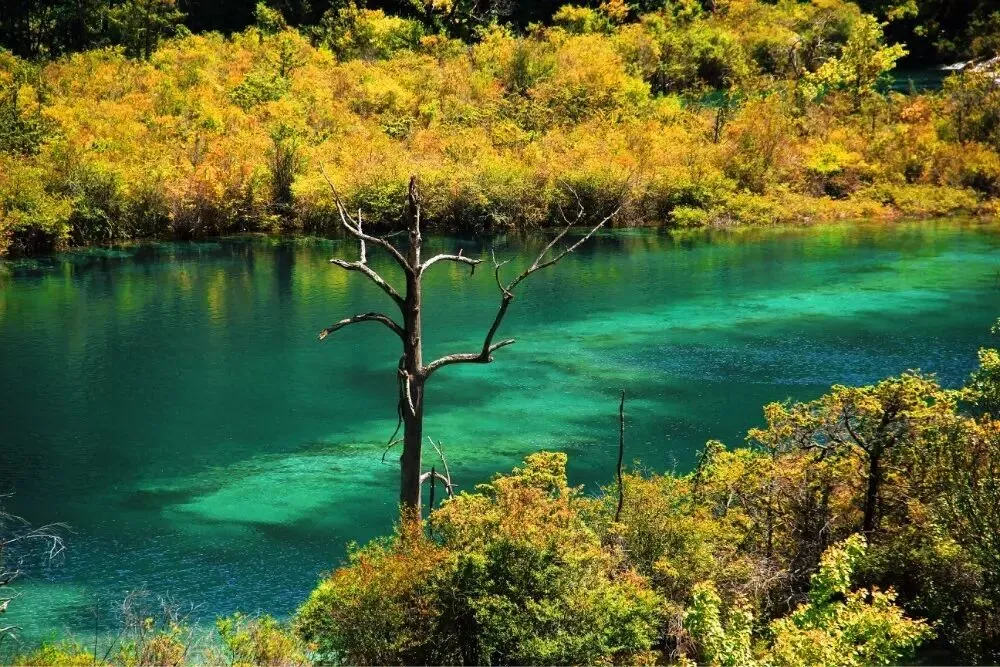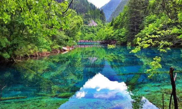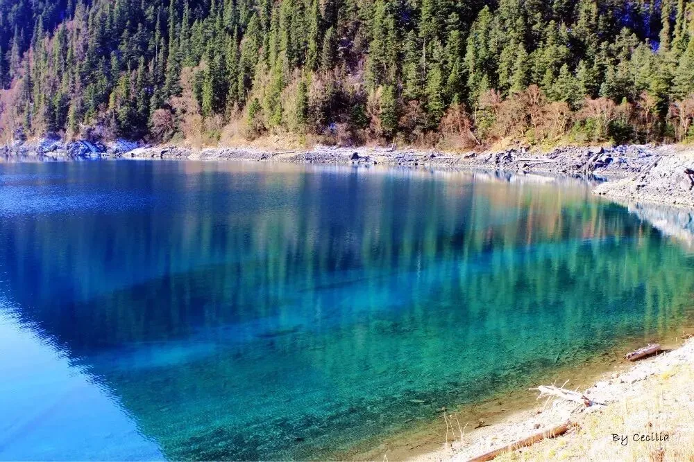 镜海依旧美丽。镜中雪峰、林岚倒映,细观水中的倒影比真正的实景显得更加婀娜多姿,堪你九寨沟绝景之一。