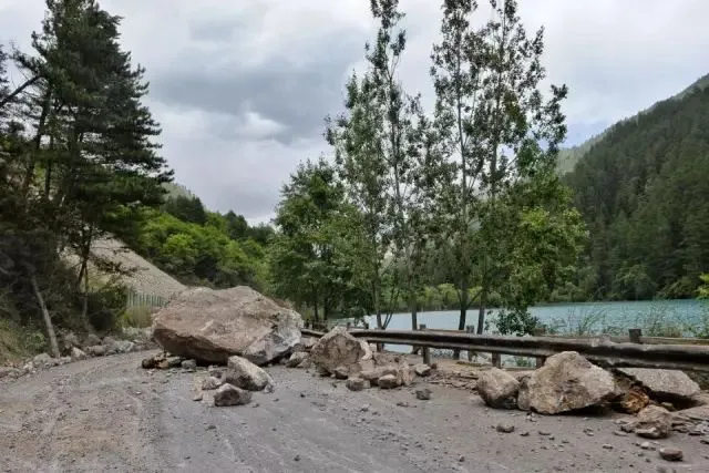 除了海子,景区内道路也受到了不同程度的损伤,从游客中心到则渣哇沟和日则沟分叉口沿途的道路上,碎石满地。