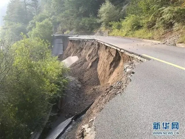 多处道路因为地震发生了不同程度的塌陷、断裂,现场一片狼藉。