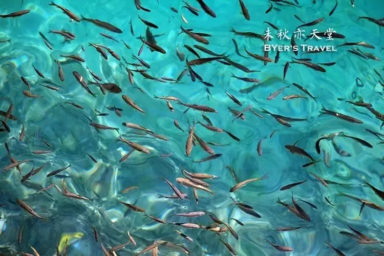 片子中提到的火花海又称火花池,海拔2187米,深9米,位于四川阿坝州九寨沟双龙海与卧龙海之间,湛蓝色的水面上波平如镜。