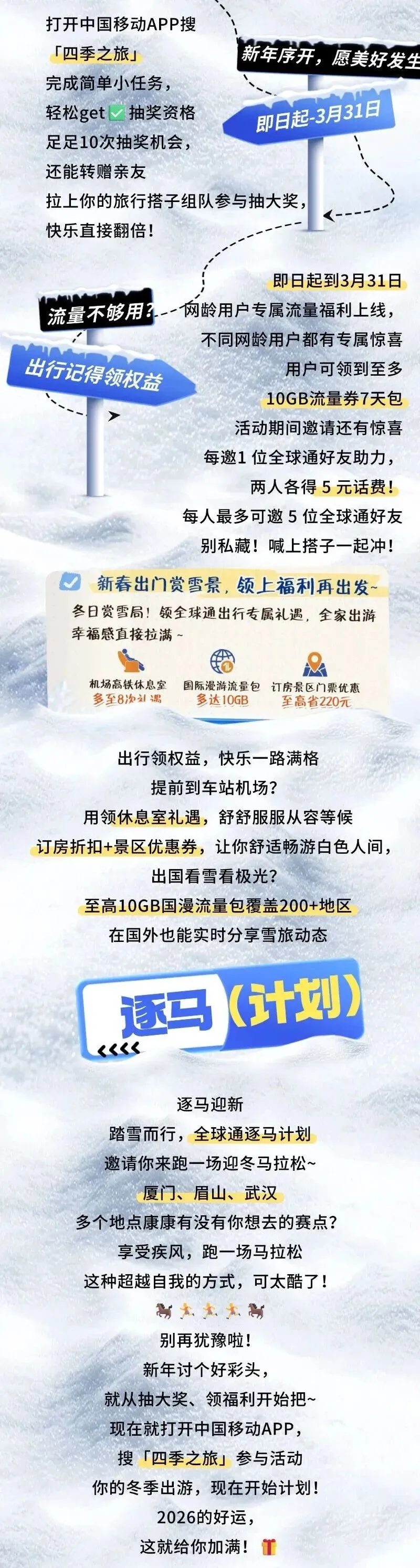 成渝德眉资五地旅游景区门票互抵活动:即日起至2026年2月28日,游客凭本人7日内在成渝德眉资五地任一参与活动景区核销使用过的门票,到另四地参与活动的景区购买门票时,可享受首道门票(成人全票金额)五折优惠(仅限本人使用)。具体优惠政策以景区公示情况为准。