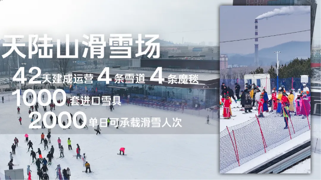 谁说滑雪是高手的专属?天陆山滑雪场绝对是滑雪小白和亲子家庭的快乐老家!占地14万平方米的雪场被白雪覆盖,4条超友好的初、中级雪道总长近2公里,搭配便捷的魔毯,不用扛板爬山,轻松就能享受滑行的快乐。