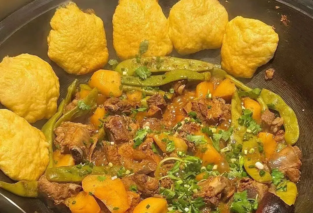 2.铁锅炖:冬日暖心招牌!柴火慢炖的铁锅炖大鹅,锅边再贴一圈金黄玉米饼,酥脆软糯双口感。