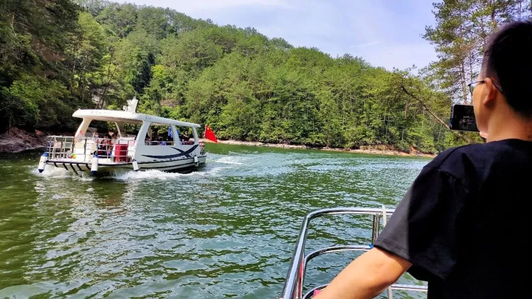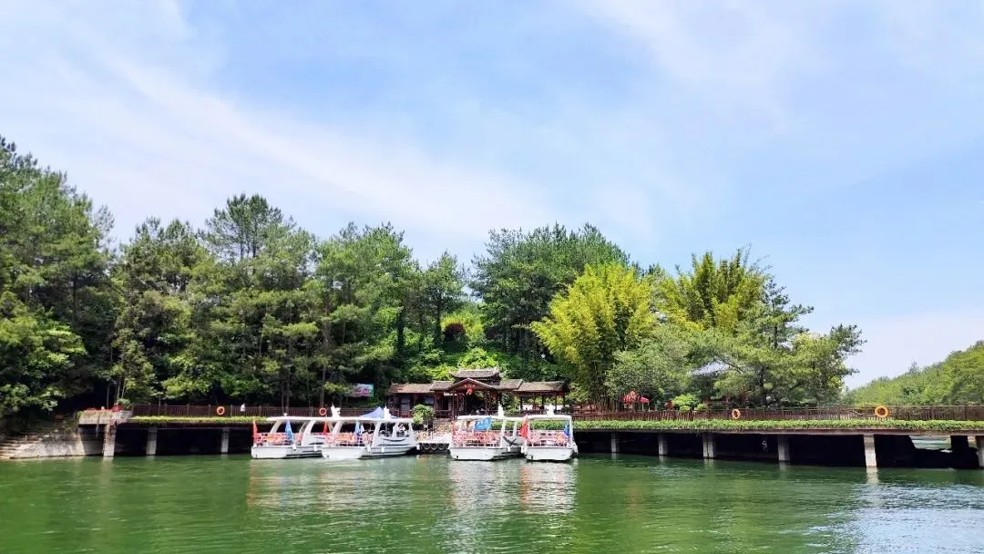 与竹安寨相连,水面1200亩,纵深24公里。湖中有山,山中有洞,洞中有水,著名景点大回环,令人看过无法忘记。九龙湖山水相依,岛屿星布,水巷错落,峰峦耸峙。水上飞人、水上桨板、水上乐园和木屋烧烤等,无一不是游客休闲度假时喜爱的有趣体验。
