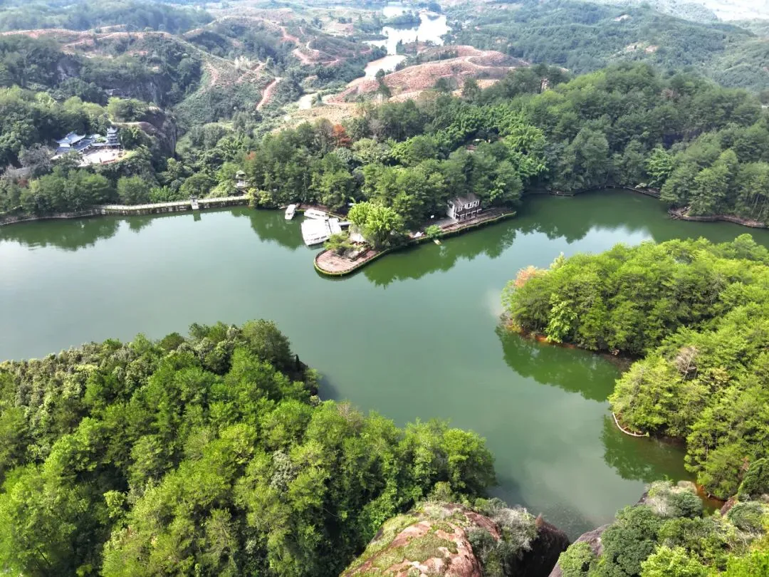 冠豸山的“生命之根”与石门湖的“生命之门”之形象景观,素有“阳刚天下雄,阴柔举世媚”之美誉,堪称“丹霞双绝”。令人不禁感叹,村姑无黛貌倾城,冠豸有价值连城。