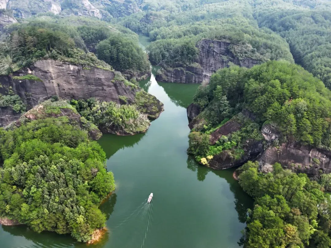 冠豸山景区是龙岩世界地质公园,国家AAAAA级旅游景区,因其主峰酷似古代御史大夫的獬豸冠而得名,寓意刚正廉明,属壮年早期单斜式丹霞地貌。
