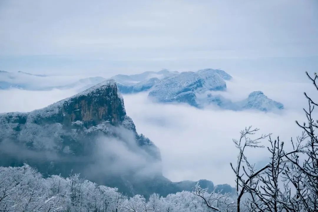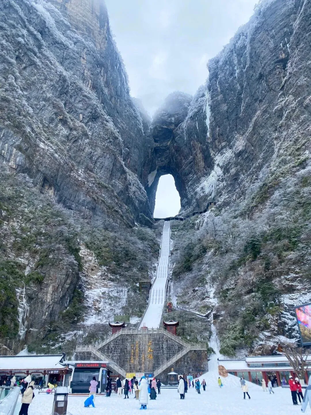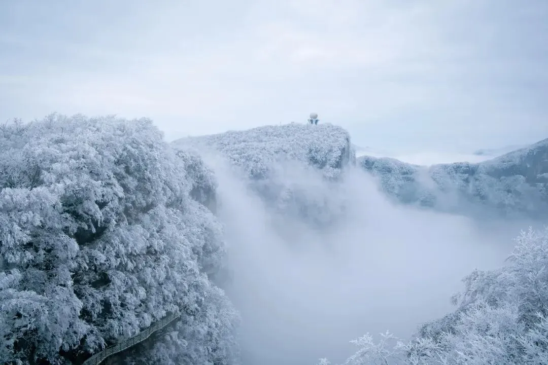 天门山是寒假必打卡的核心景点,这里的冬季美如童话。乘坐亚洲最长的高山客运索道登顶,999级天梯覆着薄雪,天门洞开处雾凇晶莹,仿佛通往天界的门户。漫步悬于峭壁的玻璃栈道,脚下是万丈深渊,身旁是玉树琼枝,惊险与绝美在此完美交融。冬季的天门山少了人潮拥挤,能沉浸式感受山风穿洞而过的壮阔,偶遇“天门吐雾”奇观更是终生难忘。