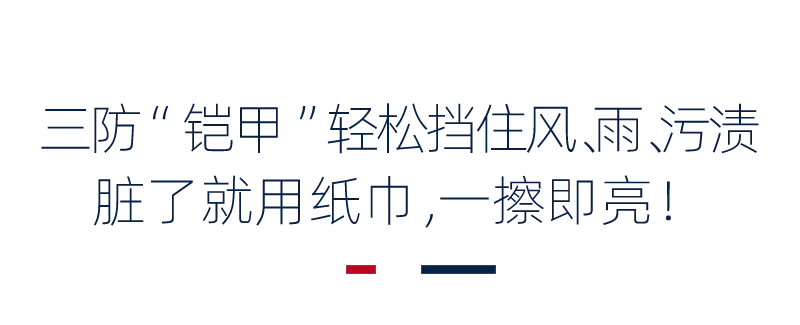✅ 防水、防风、防污三防如护盾,风雨污渍,一擦就干净!