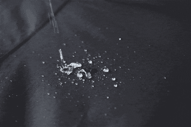 水滴打上去像踩了滑板一样,唰地溜走,不留痕!