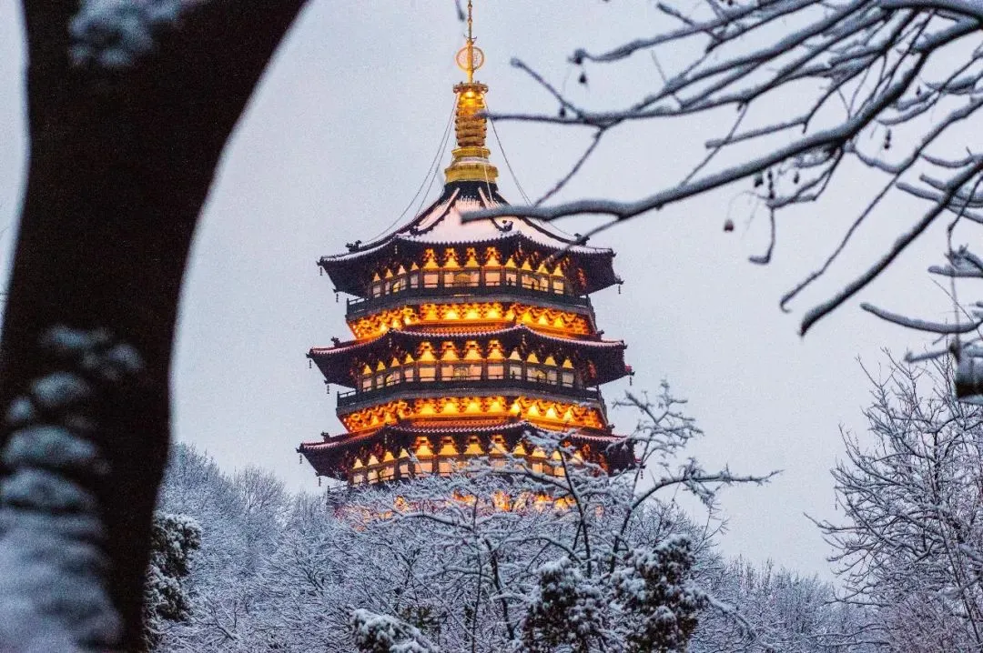 当西湖雪后初晴时,日出映照