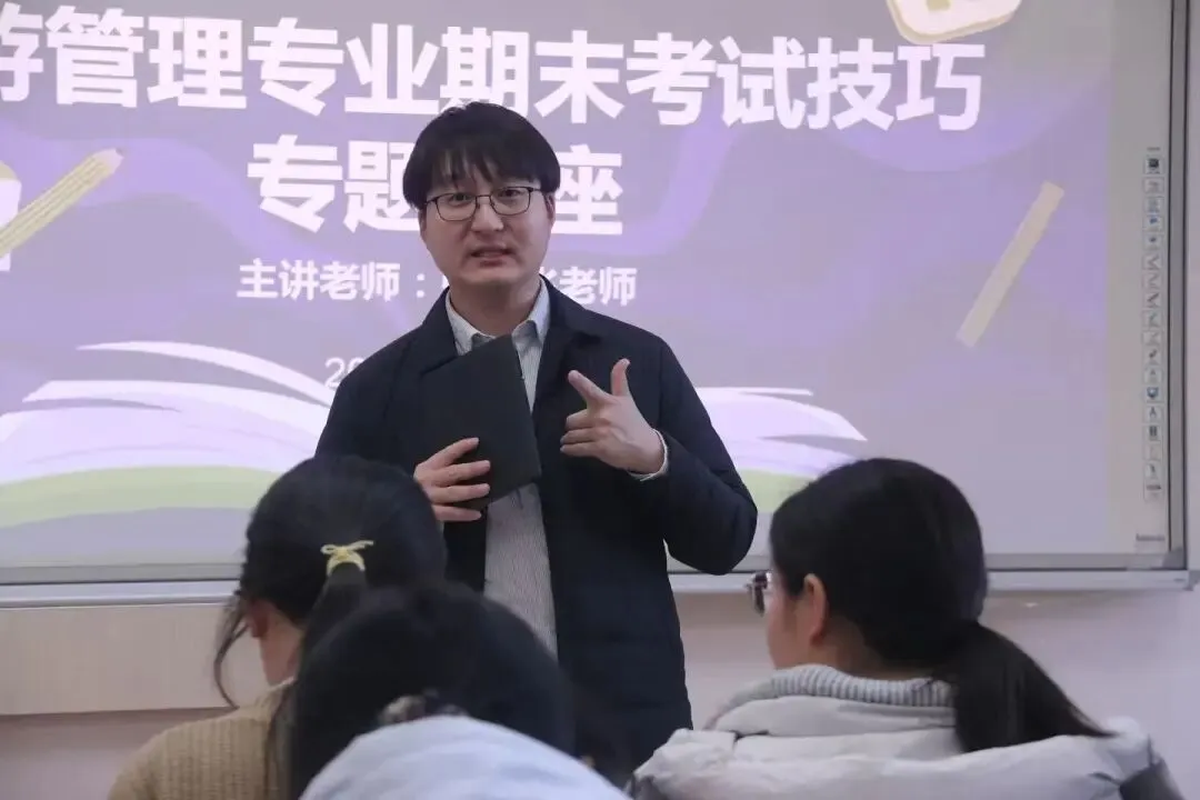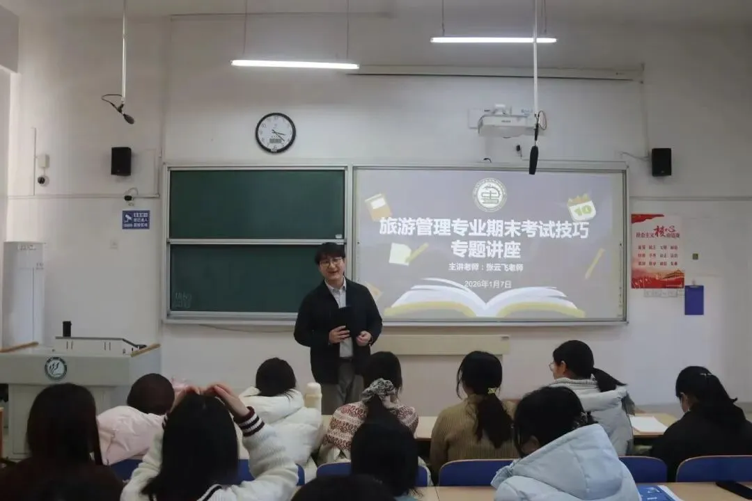 为帮助学生理清复习思路、掌握高效应考技巧,强化考风考纪意识,营造公平公正的考试氛围,1月7日,我院于6#A503教室举办旅游管理专业期末考试技巧专题讲座,由张云飞老师担任本次讲座的主讲人。
