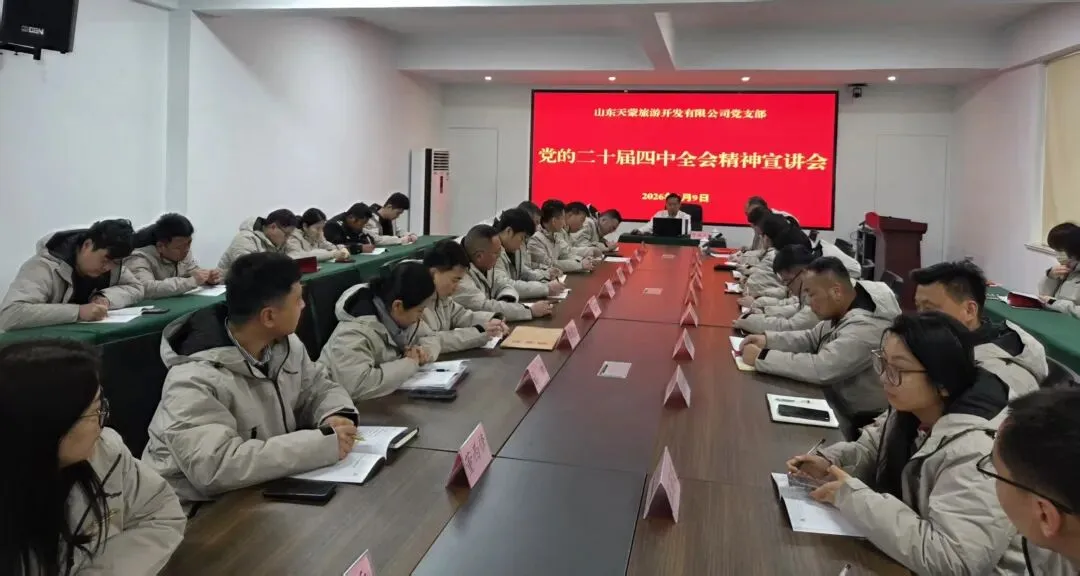 为深入学习领会党的二十届四中全会精神,全面落实党中央 “十五五” 时期战略部署及山东文旅集团、景区集团党委统一要求,2026 年1月9日上午,天蒙公司党支部召开学习贯彻党的二十届四中全会精神专题宣讲会。全体党员干部职工聆听系统解读,凝聚发展共识,为公司高质量发展注入强劲思想动力。