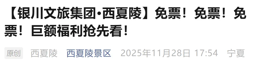 ✅免费时间:2025年12月1日起-2026年2月28日,西夏陵景区向全国游客免首道门票。