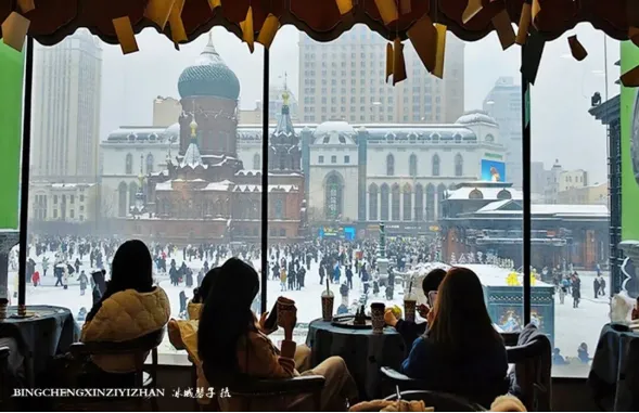 窗边,几位来自广州的游客,正兴奋地聊着此行的奇遇。她们此行是要去赴漠河的极光之约,途经冰城,遇上不期而遇的大雪。手机镜头一次次对准雪幕中的索菲亚教堂,定格下难忘的北国时光。