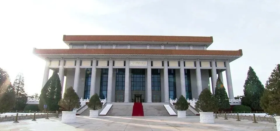 毛主席纪念堂:1976年动工,1977年落成,存放毛泽东遗体,供公众瞻仰。柱廊型正方体,44根花岗岩石柱环绕,镌刻“毛主席纪念堂”金字匾额。