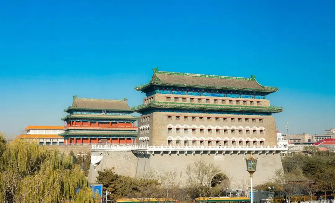正阳门城楼:城楼、箭楼与瓮城一体,现存城楼和箭楼,为北京城垣建筑代表。