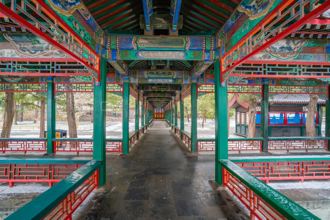 长廊:全长728米,是世界上最长的画廊。廊上有超过14000幅苏式彩画,内容丰富,绚丽多彩。