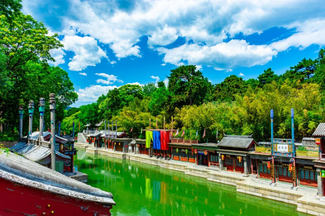 苏州街:乾隆时仿江南水乡风貌而建,是专供清代帝后逛市游览的买卖街,还原了清代市井风貌。