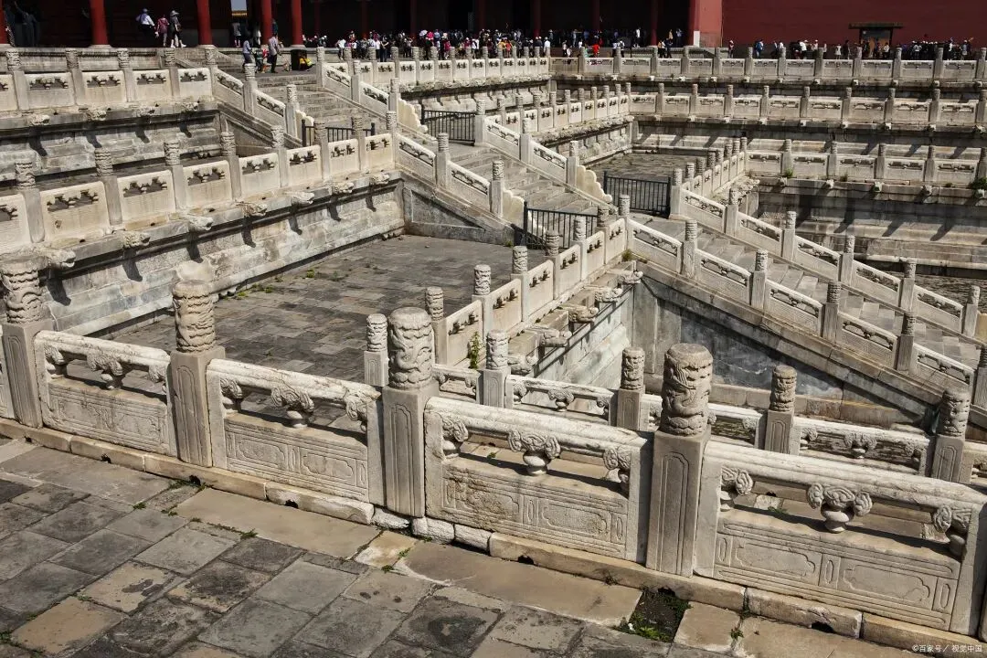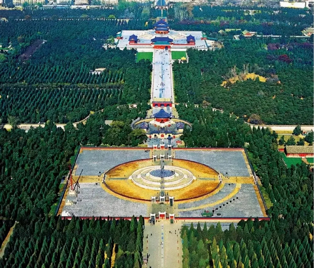 圜丘坛:专门用于“冬至”日祭天,中心建筑是一巨大的圆形石台,名“圜丘”。圜丘坛的台面石板、拦板及各层台阶的数目均为奇数九或九的倍数,体现了中国古代对“九”这一数字的崇拜。