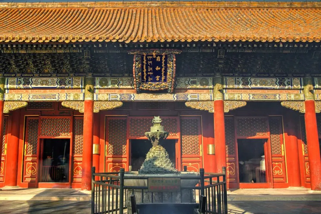 雍和宫殿:为雍和宫的主殿,供奉着三世佛(横三世佛)。