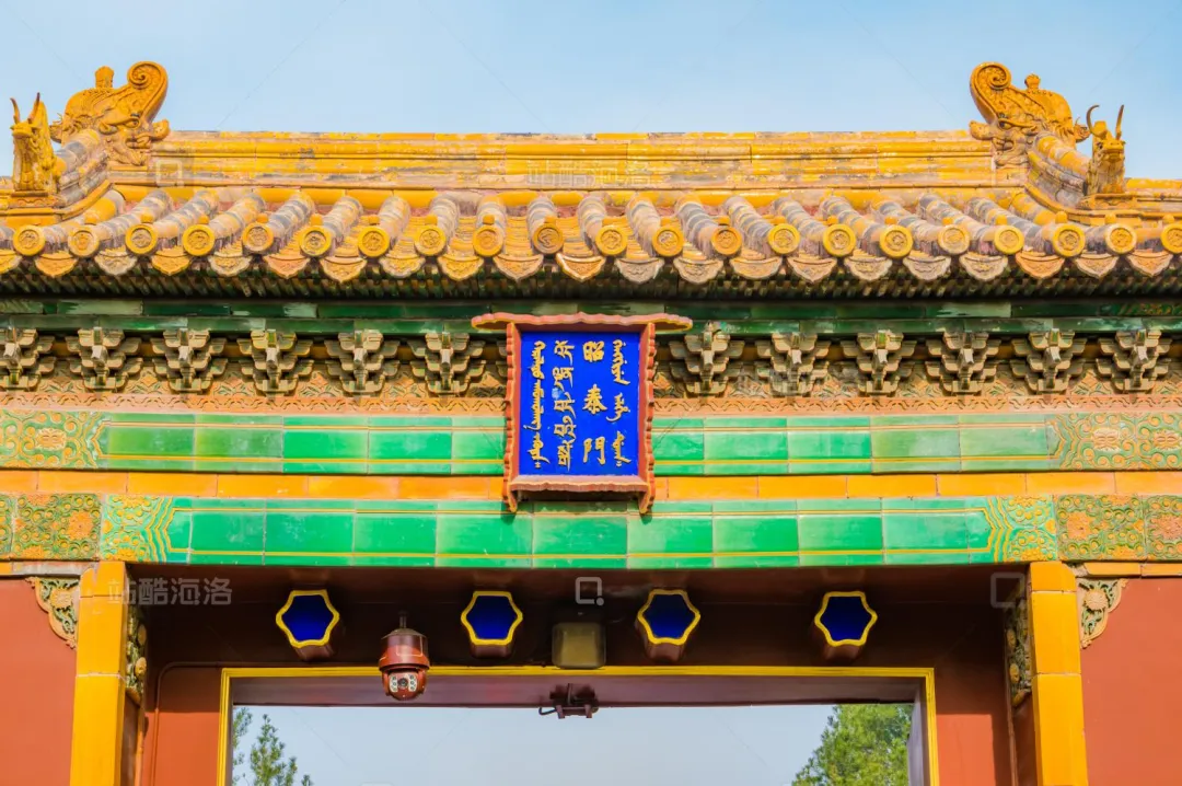 昭泰门:牌楼院北为昭泰门,中间为一间正门,两侧各有一旁门,黄琉璃筒瓦歇山顶,棋盘大门。